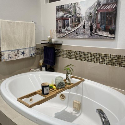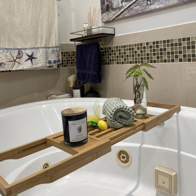 - Bamboo bathtub caddy for an at-home spa experience