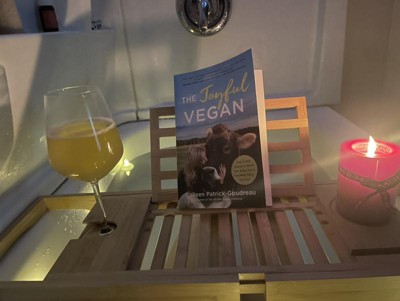 A: The caddy can hold a wineglass, candle, and has a stand for a tablet.