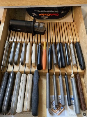 Where has this been all my life? This helped me narrow down my knife collection to just what I really use and keep it more safely organized. Loved it so much, I bought one for my mom for Christmas to help keep her fingers safe with declining vision