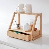 Create a more organized kitchen with the Bamboo Kitchen Counter Organizer from Brightroom™. This kitchen counter organizer features a swing-like design with a shelf and a drawer to give you plenty of space for cups, canisters and more. Made of bamboo, this natural-shade organizer makes a practical addition to your kitchen and complements a variety of decor styles.