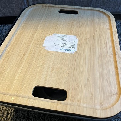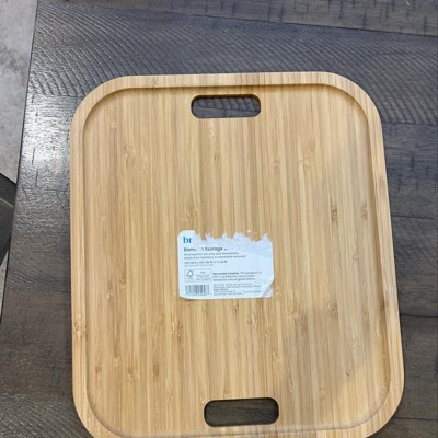 A: Hi Farmgirl - Thank you for the inquiry about Bamboo Lid with Cutout Handles - Brightroom™. The Product Dimension: 0.44"H x 14.75"L x 12.5"W and Handle Hole: 2.83"L x 0.98"W. Hope this helps! - Rolex