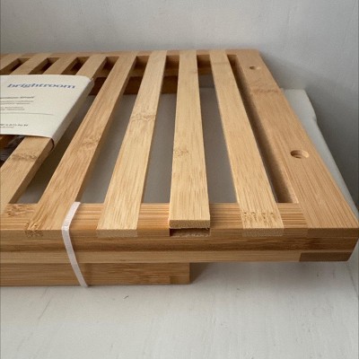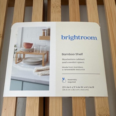 A: Hi Nancy - Thank you for reaching out to us with your query about the Bamboo Shelf Natural - Brightroom. The overall dimensions of the Shelf is 6.73 Inches (H) x 15.63 Inches (W) x 10 Inches (D). I hope this information was helpful. Happy Shopping! - Josh