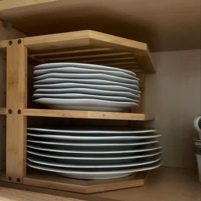 Plate Organizer for Cabinet - Bamboo Kitchen and Bathroom Corner Shelf - Kitchen Cabinet Organizer for Plate, Dish - Corner Cabinet Organizer