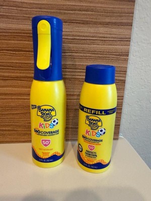 [This review was collected as part of a promotion.] ⭐️⭐️⭐️⭐️⭐️ Kid-Friendly and Parent-Approved! The Banana Boat Kids 360 Coverage Sunscreen Mist Refill is a total game-changer for sun protection with little ones! As a parent, I love how easy it is to use—just pop it into the 360 sprayer and you’re good to go. The mist sprays evenly from any angle, which makes it perfect for wiggly toddlers who won’t sit still for long. It offers reliable broad-spectrum SPF protection and holds up really well during water play and outdoor adventures. I also appreciate that it’s gentle on sensitive skin, with no harsh scent or irritation. We’ve had zero sunburns since using it, even during long days at the park or beach. The refill option is a great bonus—eco-conscious and budget-friendly. This is now a must-have in our summer
