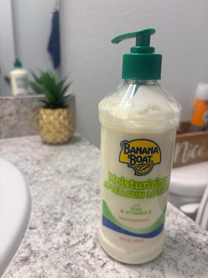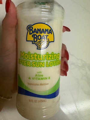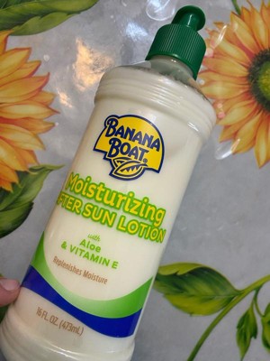 The sun can be hard on your skin. Banana Boat Moisturizing After Sun Lotion helps to moisturize and replenish dry skin leaving you feeling smooth and soft. This after sun care lotion is free from oxybenzone and formulated with aloe and vitamin E to preserve your skin and extend your tan. It provides the relief your skin needs to protect against the drying effects of the sun, wind, and water.