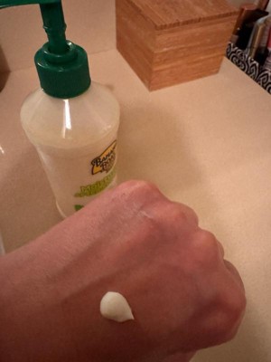 [This review was collected as part of a promotion.] I like this lotion because it is great for when you get a sunburn. It is not sticky, but is still very soothing. It absorbs into the skin fairly quickly. It has a very mild scent.