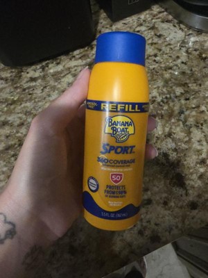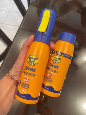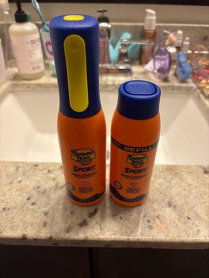 Suncare has evolved. Now there is a better way to spray with Banana Boat Sport 360 Coverage. Use these refill bottles with the Banana Boat Sport 360 reusable, twist-off sprayer. The easy to control sport sunscreen mist goes on your skin, not in the air. It’s also easy to grip so it doesn’t slip, and you can control the way you spray. It’s the first non-aerosol sunscreen spray that is refillable, reusable, and recyclable. With sport-strength protection that has high endurance versus sweat and water, it lasts as long as the fun does. Note: Sunscreen sprayer sold separately.