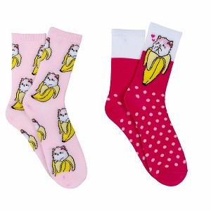Treat yourself to more anime character cuteness with these adorable Bananya character crew socks designed for fans of bananas and cats. The popularity of Bananya featuring cats hiding inside of banana peels continues to grow and this pair of crew socks enhances any Bananya collection. Each design has its own unique charm and looks great with many casual outfits.