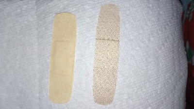 Gauze too narrow and adhesive sticks to the wound. I am very disappointed. I had an old box that we kept in our first aid kit that these were to replace. These are the worst. Just charge more if you have to.I want a bandaid that doesn't rip open my wound every time I change the bandaid. These were a waste of time and money. What is the new material that these bandaids are made from? Whose terrible idea was this!