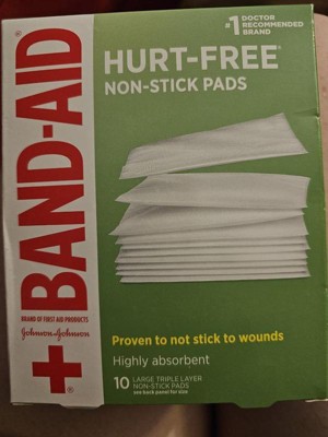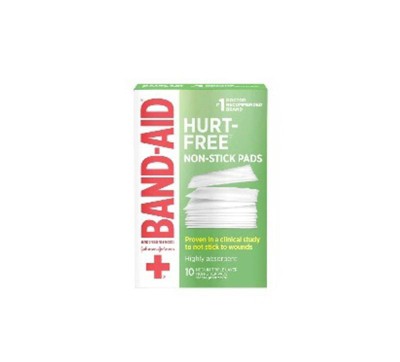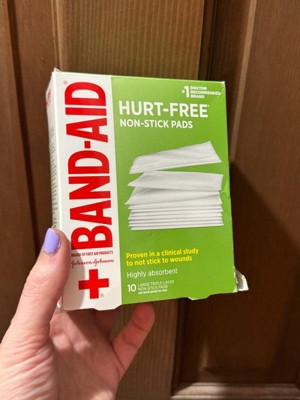 - Pack of Band-Aid Brand of First Aid Products Large Hurt-Free Non-Stick Pads for wound care