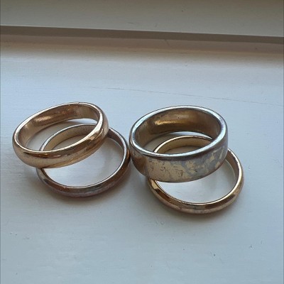 Welp, just like allll the other A New Day jewelry I’ve tried these have tarnished in record time. I’ve been wearing them for two days and the gold color coating (whatever it is) has started to completely come off and show the silver color below. Who knows what kind of chemicals it’s putting into my body that are turning my fingers green. Bands even have these weird welding lines on them. The big one has these weird nicks and scratches on them almost instantly, and the gold color, while it’s still gold, is a yellow cheap looking gold. Just awful. $10 for something that cost them about 5 cents to make, can get better quality on Temu for a fraction of the price. Target, pleaseeeee stop selling A New Day jewelry, it’s not okay that literally all of their jewelry is lowest of the low quality junk! Is this what Target is now??