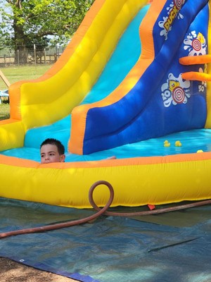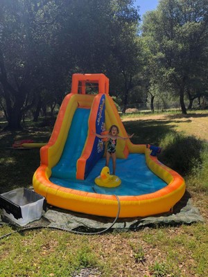 - INFLATABLE WATERSLIDE: Make summer days amazing with the Duck Blast inflatable pool with slide! This water playground is perfect for kids ages 5–12