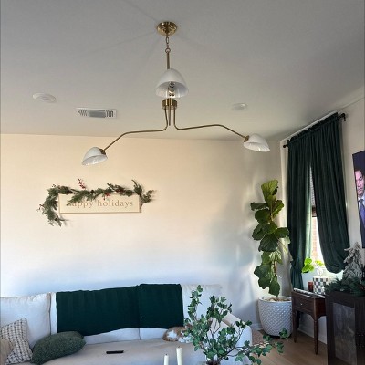 It’s so pretty. It’s sleek and modern with just a touch of vintage. I wanted something that was bold but subtle and this is it. For the most part it was easy to install. The only part that gave us a hard time was the glass bulbs. You have to adjust them to make them flush against the arm bracket.