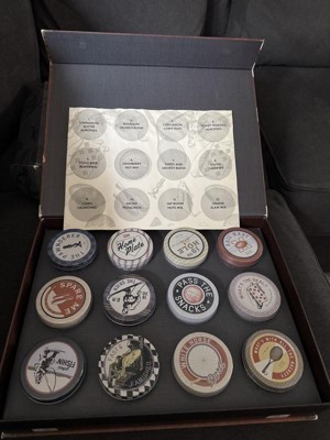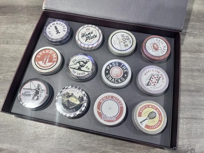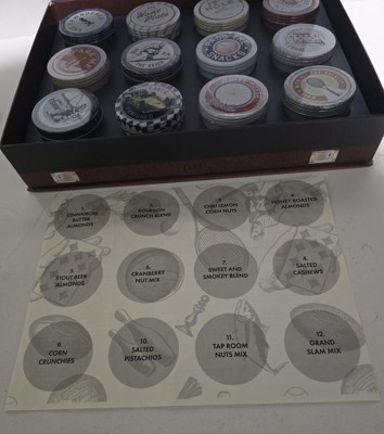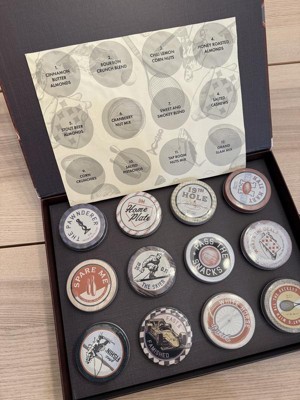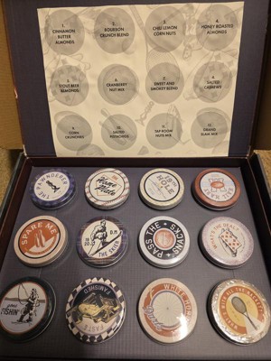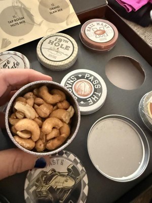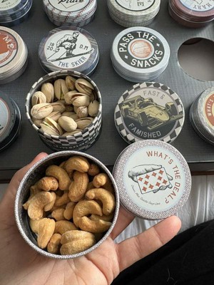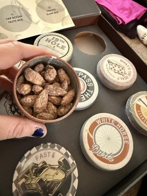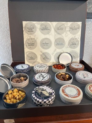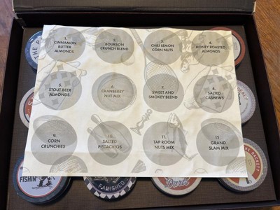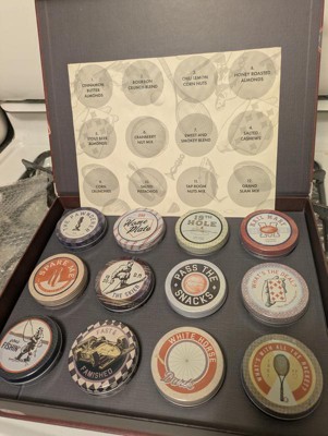 This is the coolest thing I've given my husband. It's a perfect gift set, vintage in these really cute sports themed tins and it was well received! The nuts and blends are fresh, and tasty. He really loved the stout beer almonds and the sweet and smokey blend, but they were all a hit. And he's planning on using the tins on display in the garage for various screws and things. Such a cool gift - especially for a guy who seemingly has everything. Huge hit!