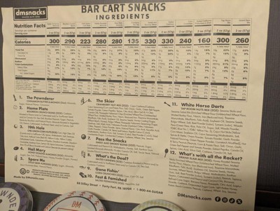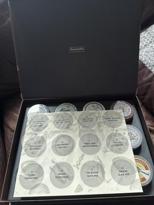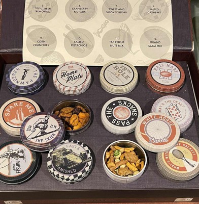 DMSnacks Bar Cart Snacks, 12 Vintage-Inspired 2oz Nut Blend. This is vintage inspired gift blend is absolutely amazing. Great quality ingredients and nice variety of nuts and other gourmet snacks. Packed in a creative vintage-style case. Very enjoyable and highly delicious! I’ve got this nice set for my husband and he loves it.