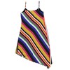 The striped pattern is enriched with metallic threads on the left side, adding a dash of glamour to the casual look. The asymmetrical hemline and adjustable spaghetti straps allow for a customized fit, ensuring both comfort and style. From day to night, this A-line dress with its V-neck design offers a modern take on a classic silhouette. Whether you're attending a casual event or going on a date, this dress is sure to impress.