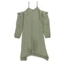 The solid pattern combined with cold shoulder design and asymmetrical hem adds a modern twist to your ensemble. The dress features ruffle long sleeves, adjustable spaghetti straps, and a V-neckline, ensuring you exude effortless elegance. Whether it's a casual outing or a special occasion, this Bar III dress ensures you do it in style.