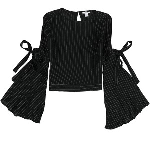 • COLD SHOULDER KNIT BLOUSE: Flaunt your fashion-forward style with this bar III Women's Cold Shoulder Knit Blouse. It features a textured two-tone design, long split bell sleeves, and a striped pattern with metallic threads, perfect for a casual chic look.