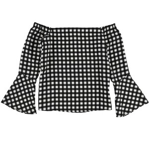 bar III Womens Gingham Off the Shoulder Blouse - 1 of 2