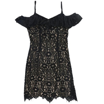 • POLYESTER CONSTRUCTION: Made of 100% polyester, this Bar III Women's Lace-Applique Off-Shoulder Dress is designed to provide a comfortable, medium-weight fit for all seasons. Its solid pattern makes it a versatile piece for any modern wardrobe.