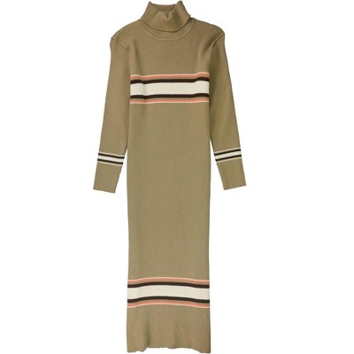 • A: The dress has a two-tone ribbed pattern with a metallic striped design.