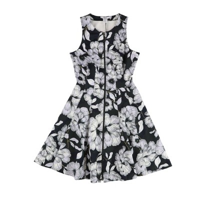The 2-tone stripes play along the fit and flare style, enhancing the wearer's figure. The sleeveless cut and V-neckline add a feminine touch, while the back hook eye with zip closure ensures a perfect fit. This casual dress effortlessly transitions from day to night and is sure to become a staple in your modern collection.