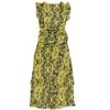 • A: The dress showcases a stylish snake print pattern, adding a unique touch.
