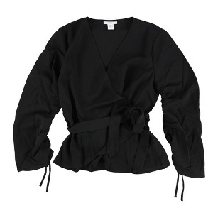 bar III Womens Ruched Wrap Knit Blouse - 1 of 2