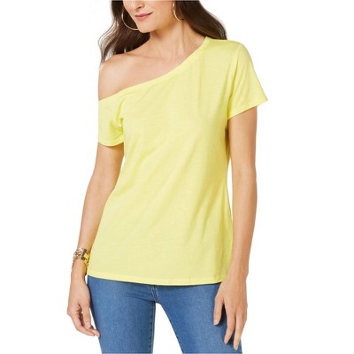 Featuring an asymmetrical V-neck and cap sleeves, this T-shirt is perfect for any casual occasion. The opaque material ensures comfortable wear throughout the year. Made in Indonesia, this tee is a versatile addition to your wardrobe.