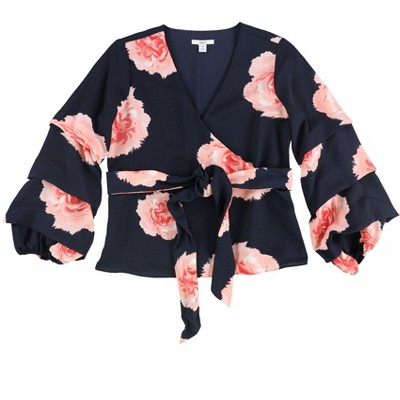 bar III Womens Tie-Hem Floral Pullover Blouse - 1 of 2