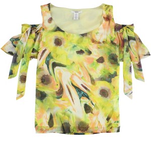 bar III Womens Tie Sleeve Floral Cold Shoulder Blouse - 1 of 2