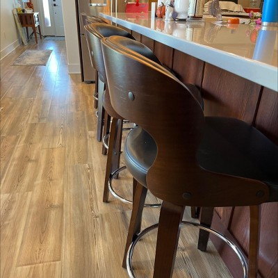 26" Counter Height Bar Stools, Mid Century Bar Stool with Solid Back, Barstools with Walnut Finish and Faux Leather Seat, 360-degree Swivel Bar Stools - 2 of 426" Counter Height Bar Stools, Mid Century Bar Stool with Solid Back, Barstools with Walnut Finish and Faux Leather Seat, 360-degree Swivel Bar Stools - 3 of 426" Counter Height Bar Stools, Mid Century Bar Stool with Solid Back, Barstools with Walnut Finish and Faux Leather Seat, 360-degree Swivel Bar Stools - 4 of 4