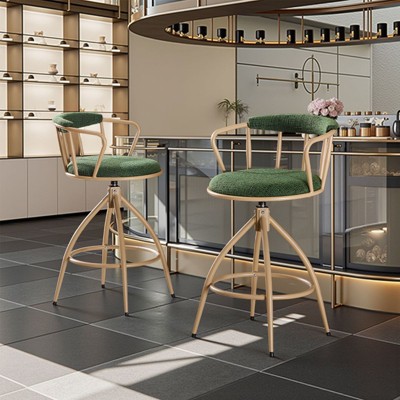 Bar Stools Set of 4/2 with Armrests, Metal Counter Height Bar Stools Set with Upholstered Seat, Footrest & Soft Back