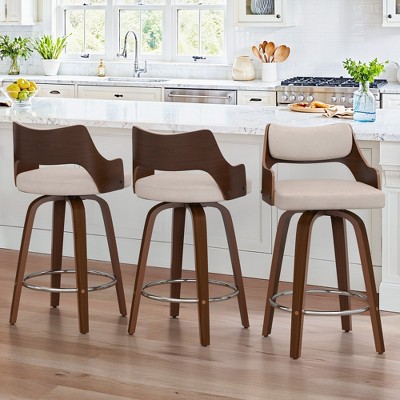 Bar Stools Set of 6 with Arms, 26 Inch Counter Height, Wide Padded Seat with Back & Footrest Brown