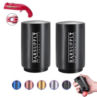 Bar Supply Magnetic Beer Bottle Opener Set: Push Down, Pop Off, Magnetic Catcher, Stainless Steel. Easy Use, 2-Pack + Bonus Cap Launcher - Rainbow