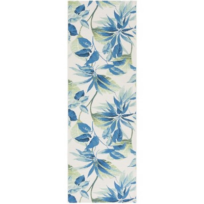 Barbados 500 BAR558 Power Loomed Indoor and Outdoor Runner - Blue/Ivory - 2'-8"x8' - Safavieh