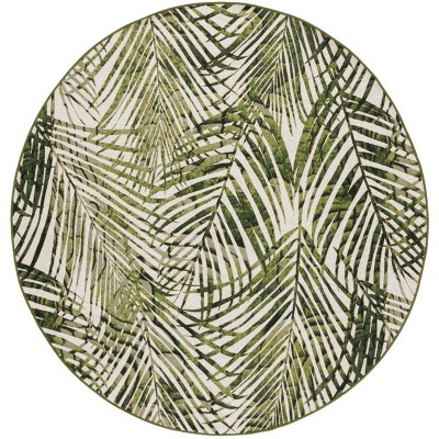 Barbados 500 BAR563 Power Loomed Indoor and Outdoor Area Rug - Ivory/Blue - 6'-7" Round - Safavieh