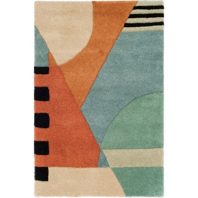 Barbados 500 BAR539 Power Loomed Indoor/Outdoor Area Rug - Ivory Black/Blue Rust - 6'6" Round - Safavieh