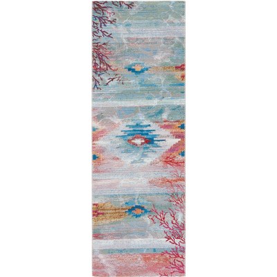 Barbados 500 BAR550 Power Loomed Indoor/Outdoor Runner Rug - Gold/Blue - 2'8"x8' - Safavieh
