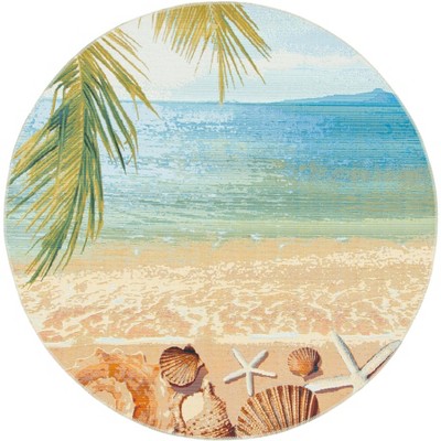 Barbados BAR585 Power Loomed Indoor/Outdoor Area Rug - Light Blue/Pink - 5'3" Round - Safavieh