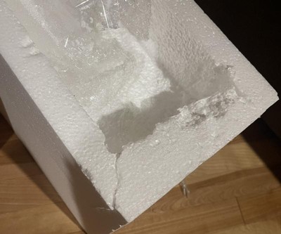 The chair is cute and mostly comfy. Mine also arrived with some sort of discoloration (bottom right of photo - much darker than rest of the chair).