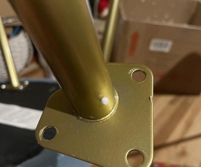 Ordered for Christmas and opened Christmas Eve to put together. Looked like it had been repackaged, very poorly. It was clear this had been opened before. One screw was in a sealed bag, all other screws and Allen wrench were loose in the bottom of the box. The screw holes on the legs were marred, where someone had put together or attempted to. There is also wear on the fabric on the front of the seat. Holes didn’t match up when putting the legs on. I would expect paying this much for a vanity chair, I would receive a new item. Very disappointed and will be contacting Target for an additional discount or refund. It is really too bad, I love the color and am going to have a disappointed daughter Christmas morning.