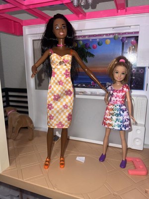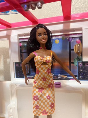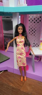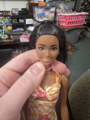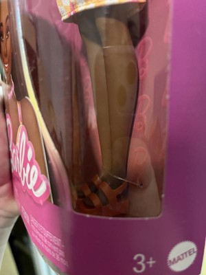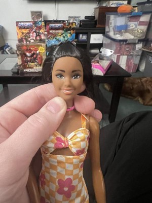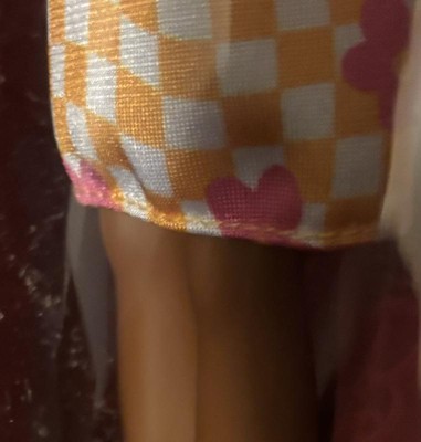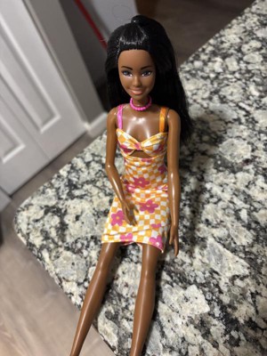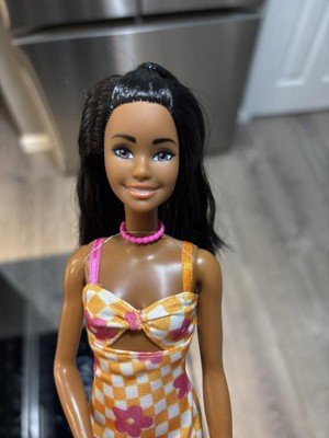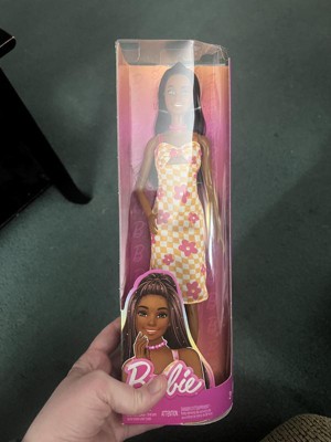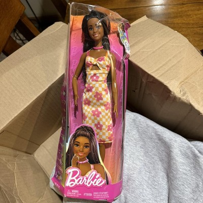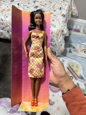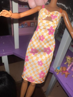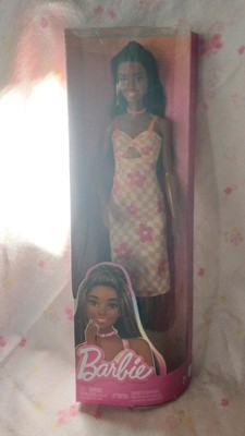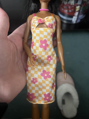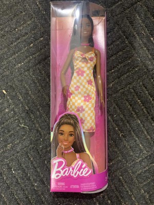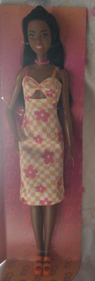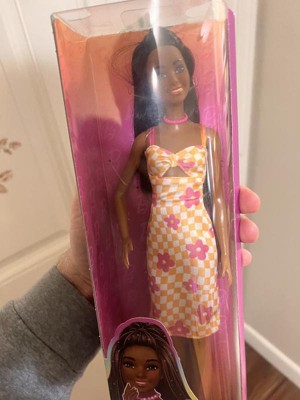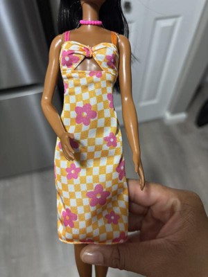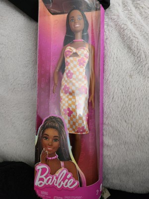Barbie 12.7" Fashionista Pink and Orange Check Dress Doll Black Hair/Brown Eyes