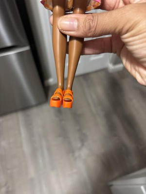 [This review was collected as part of a promotion.] This is a very basic Barbie doll, minus ugg boots and the pumpkin spice latte. Those might have spiced her up a little, pun intended. From her photo, I was hoping for a little more presence when she arrived. She has the easy, if not boring, knee length dress and orange Birkenstock type platform sandals. The Barbie head on the soles is a nice touch, but it’s hard to see. The twisted bowtie top of the dress is cute. I like that she has what seems to be the “tall” Barbie body. I really like that different body types finally made it to Barbie. I’m not sure if all fashions fit the different bodies though? The hair is decent, soft. I still don’t like rubber band kinks that end up in the hair from the box and I really, really hate the plastic tabs that I have to cut and pull out with a needle nose pliers from every Barbie’s head, including this one. Quality wise, she feels super light. I am not sure if that is intentional for little hands playing with them, but it makes me think of cheap, dollar store toys. I don’t really care for whatever screening process they use now for doll faces but the lips, teeth, eyebrows, and eye paint look grainy and poor quality like it’s made out of plastic from a 3D printer. The right eye is also kind of “wonky” as we doll collectors say. You can tell it is positioned off of the eye spot a little. It looks like the “paint” could easily be scraped off. As far as keeping the child’s attention, this doll has been sitting waiting for my 6 year old daughter to want to open it and she’s barely looked at it. It might be lack of accessories and/or gimmicks (she likes the Color Reveal dolls), but she’s only held it for less than a minute so far. Couldn’t even get a picture of her holding it. Interest is next to nil. So, unfortunately this doll hasn’t been a hit. She will likely end up on the growing pile of Barbies in my daughter’s bin.