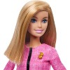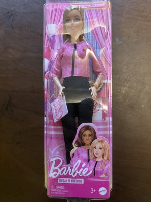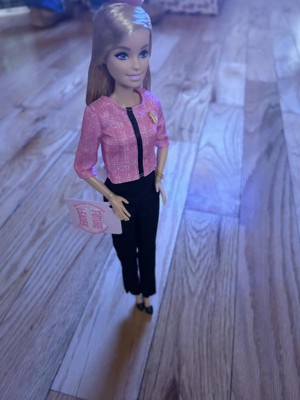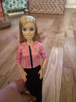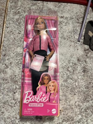 [This review was collected as part of a promotion.] Barbie is dressed smartly with black pants and a pink and black top. She also comes with a pair of black high heel shoes and a gold bracelet. Her blonde hair out of package came very stiff. Seems like there is some styling gel in it. It can be washed out with soap and shampoo. We love these you can be anything Barbie’s because it shows my daughter she can be anything she wants to be when she grows up.