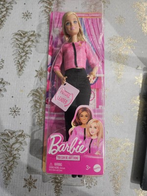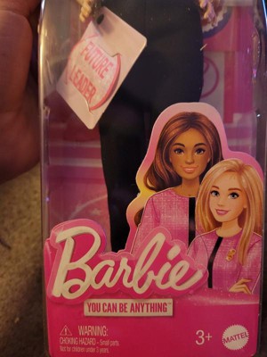 With Barbie Future Leader doll, kids can explore all kinds of leadership roles, all the way to the top! From campaign tales to election events to decision-making moments, Barbie doll is ready to inspire stories around leadership. She wears a polished pink and black outfit accessorized with two golden bracelets and 'B' pin. A kid-sized 'Future Leader' sticker lets kids role-play the campaign trail with Barbie. Imaginations can play out a world full of storytelling possibilities and career opportunities with this powerful doll, ready to inspire kids to be anything! Doll cannot stand alone. Colors and decorations may vary.