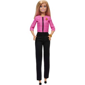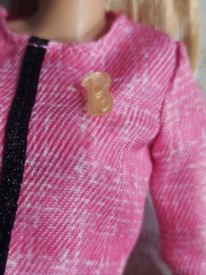 - Barbie doll is ready to take the lead in a pink blazer top and skirt or pant look, paired with two golden bracelets and 'B' pin!