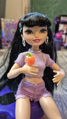 - Renee doll features long black hair, styled in pigtails, with shiny purple highlights to showcase her enthusiastic personality!