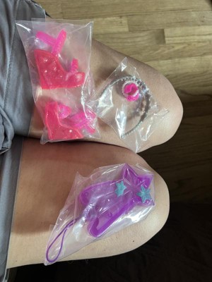 - Kids can play dress-up on a bigger scale! She comes with a shimmery headband, two bracelets, and a shooting star handbag that loops around her wrist and fits the other accessories inside.
