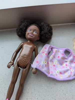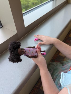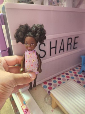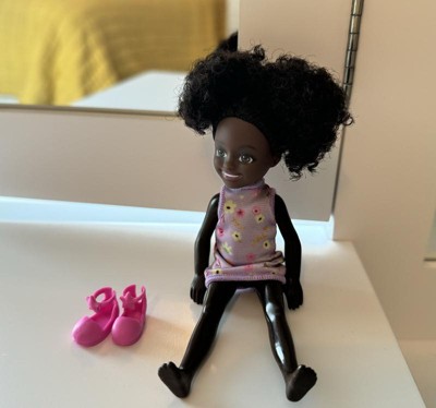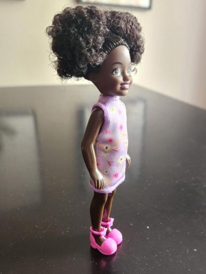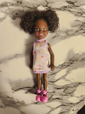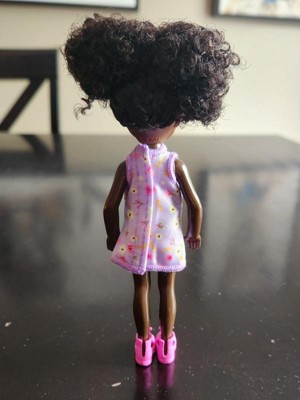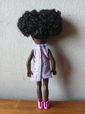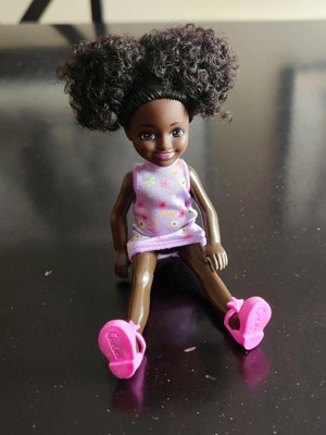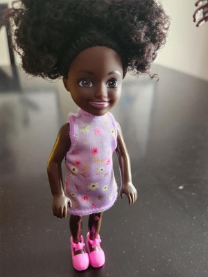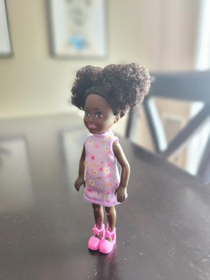 [This review was collected as part of a promotion.] This Barbie Chelsea was given to one of my twins. She didn’t care for the dolls skin color. She wanted to know why she was so dark. I like her natural hair because it depicts how we have a abundance of texture. The little girl didn’t like her hair because she said you couldn’t comb it. The clothes were easy to take off but she had a problem putting them on.